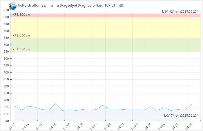Időpont Vízállás (cm) Vízhozam (m3/s) Vízhő a felszín közelében (C°) Vízhő a mederfenék közelében (C°)