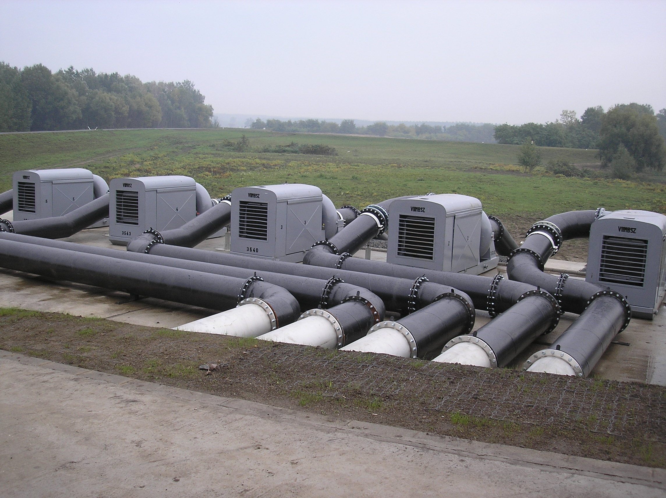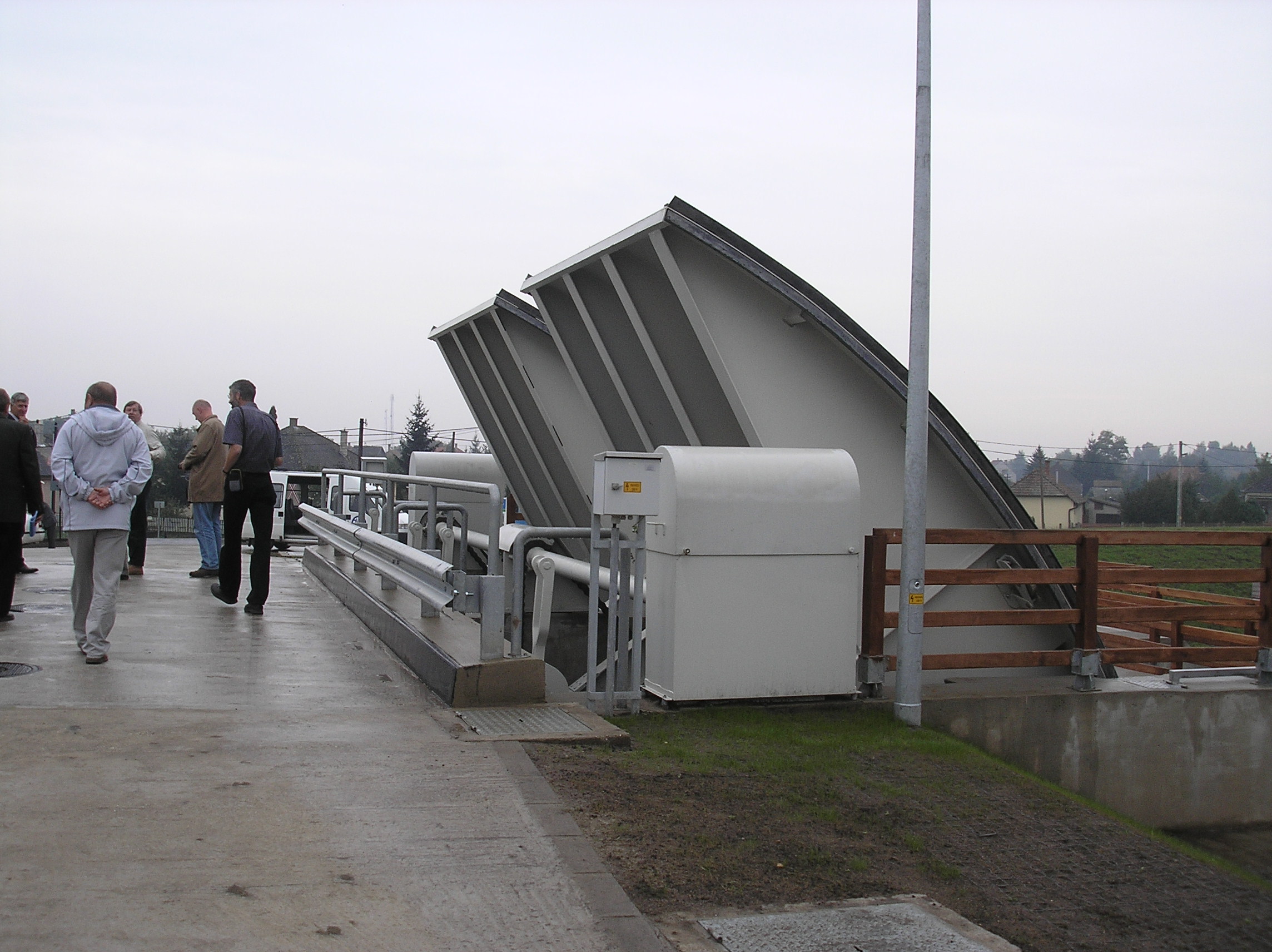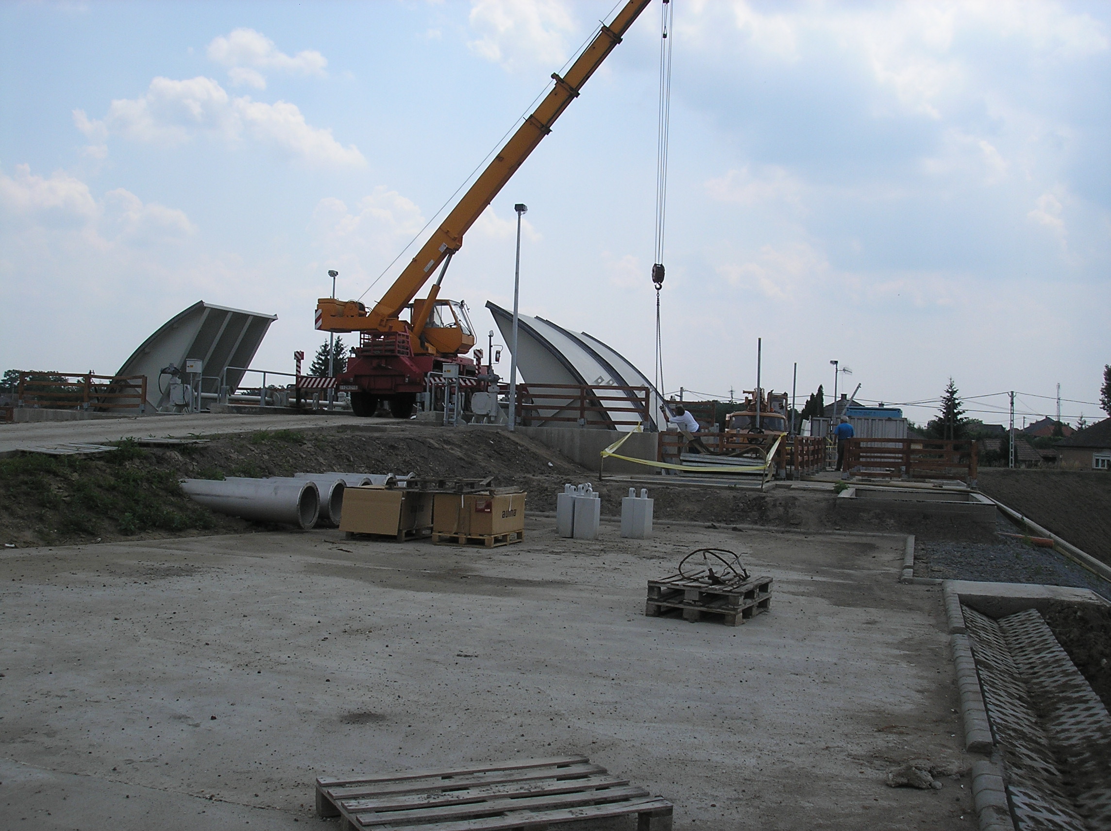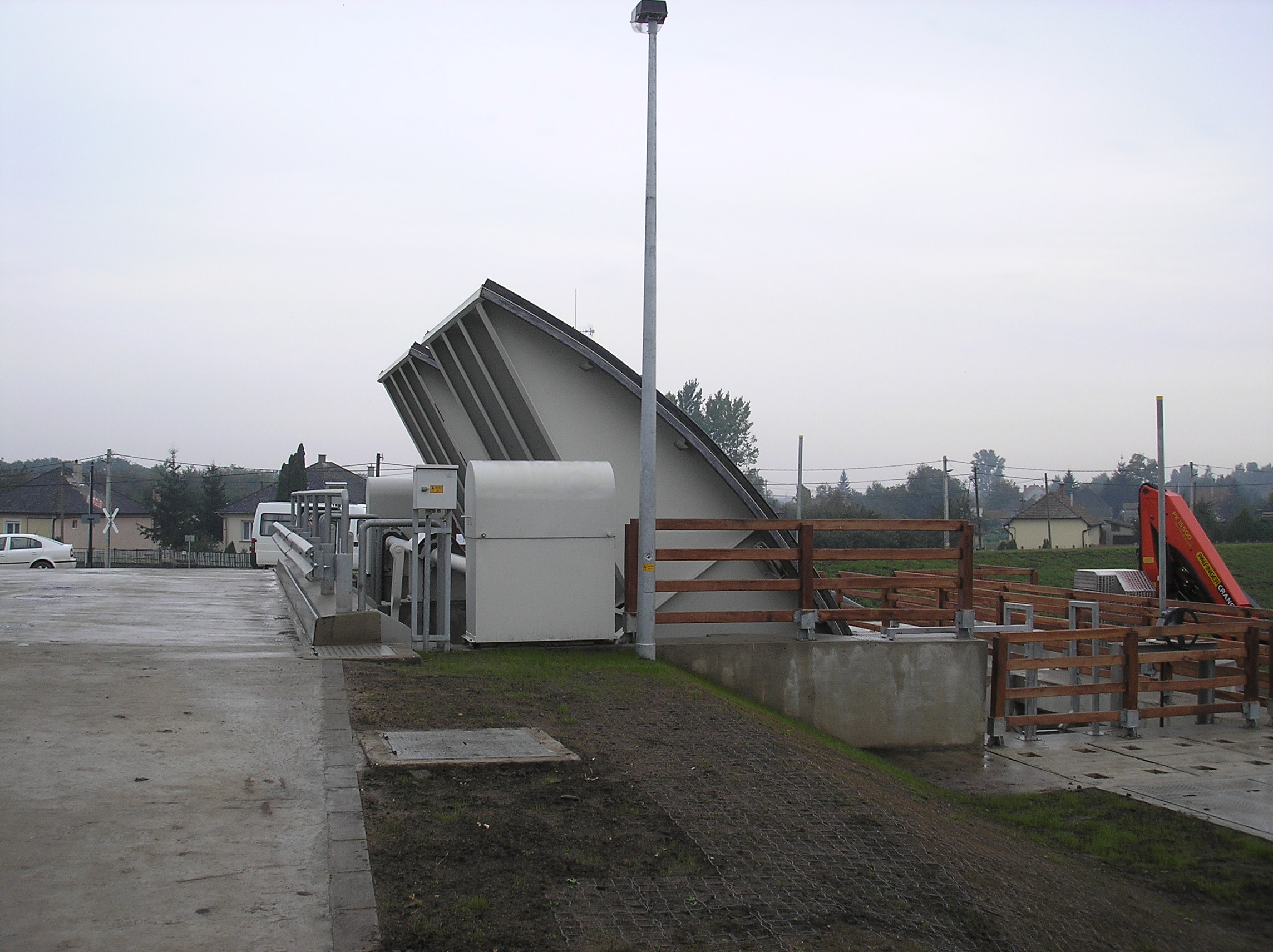 A műtárgy kialakítása: 2 nyílású, ?nyitott szelvényű? vasbeton műtárgy (árvízkapu), üzemi átjáróhíddal, szivattyú aknákkal. Az átfolyó nyílások szélessége: 2x4,00 m. A mederfenékkel közel egyező műtárgy fenékszintje/küszöbszintje: 93,40 mBf/93,60 mBf.