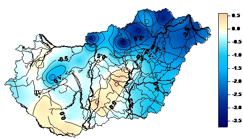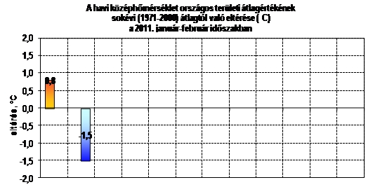 A 2011. január-február időszakban lehullott csapadék mennyisége az ország egész területén elmaradt az időszakos átlagtól.