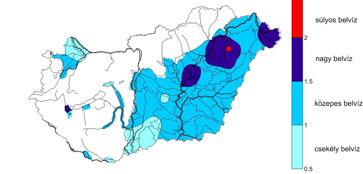 A csapadékszegény idei január és február ellenére - még az előző évi rendkívül nagy csapadékmennyiség hatására - síkvidéki területeinken, főleg a Tisza-völgyben, igen magasan áll a talajvíz, sok helyen a terepszint alatt 50-100 cm-re van, s a talaj vízbefogadó-képessége csekély. Ezért a mostani súlyos belvízi helyzet - kedvező tavaszi időjárás esetén is - csak lassan fog javulni. A javulást az Alföld északkeleti részén a viszonylag hűvösebb időjárás, a délkeleti részeken pedig az itt még meglévő, március első napjaiban kb. 10-15 mm víztartalmú hótakaró fogja lassítani. Amennyiben március az átlagosnál jóval csapadékosabb lesz, akkor a belvízzel elöntött területek újból növekedhetnek, amire - a belvízindex előrejelzett értékei alapján - legfőképp a Tisza menti területeken és a Tiszántúl északi felén kell számítani.