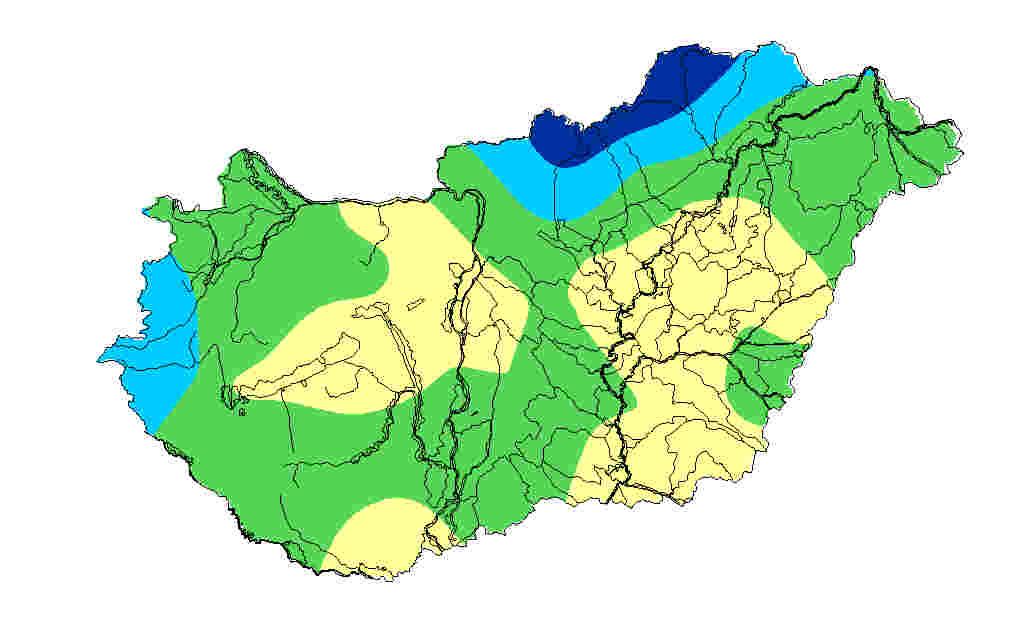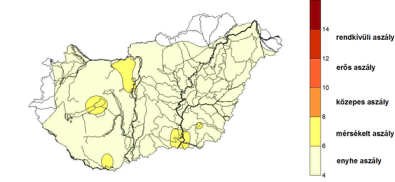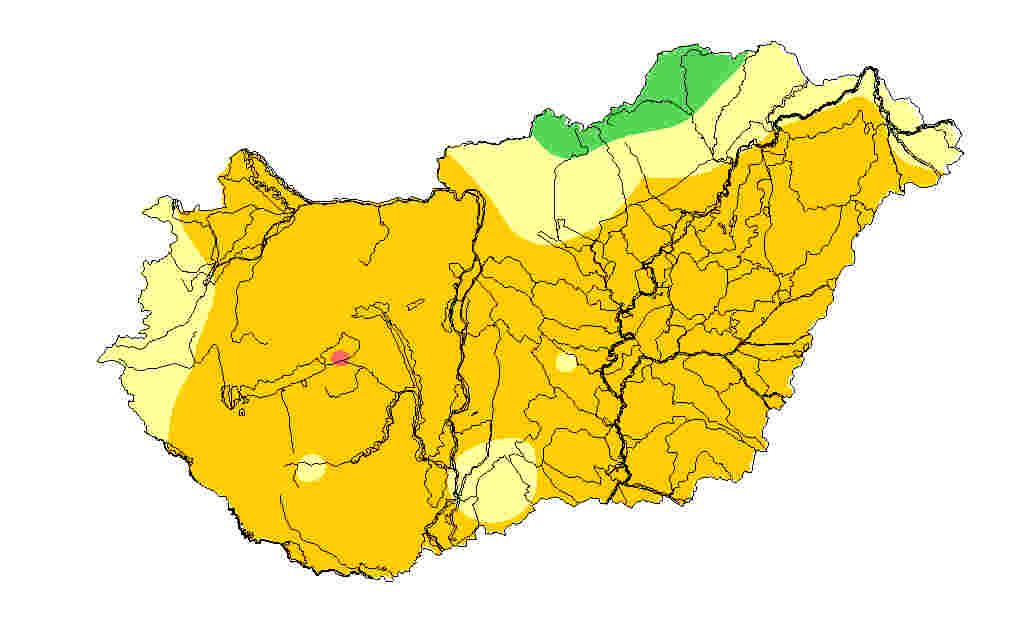 Amennyiben az idei nyár hátralévő része átlagos csapadékú lesz, úgy az aszálynak általában csak enyhe illetve mérsékelt fokozatára kell számítani (PAI=4-8).