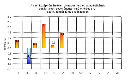 Az alábbi szövegközi ábrán a havi középhőmérséklet országos területi átlagértékeinek idei alakulását szemléltetjük.