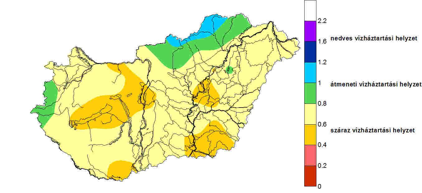 Országos áttekintésben az átlaghoz viszonyított legnagyobb hathavi csapadékhiány (175-229 mm) a Dunántúlon a Lenti-Nagyvázsony-Szentlőrinc vonaltól délre eső területen alakult ki.
