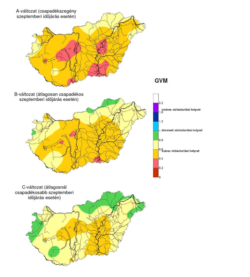 A GVM szeptemberre előrejelzett értékei - átlagosan csapadékos szeptemberi időjárás esetén - a legtöbb állomáson a sokévi átlag alattiak, néhány helyen (Siófok, Pécs és Szeged) megközelítik az eddig előfordult minimumot.