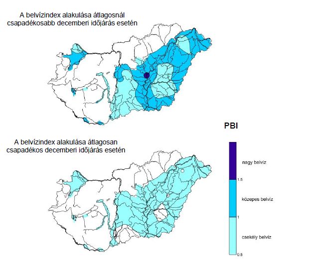 A belvízindex három változatban meghatározott értékei arra engednek következtetni, hogy a belvíz kialakulásának hidrológiai feltételei elsősorban a Tiszántúlon teremtődhetnek meg, de természetesen a téli csapadékmennyiség területi eloszlása lesz majd a döntő.