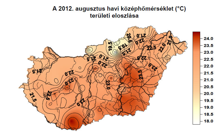 A havi középhőmérséklet az ország egész területén meghaladta az átlagos augusztusi értéket.
