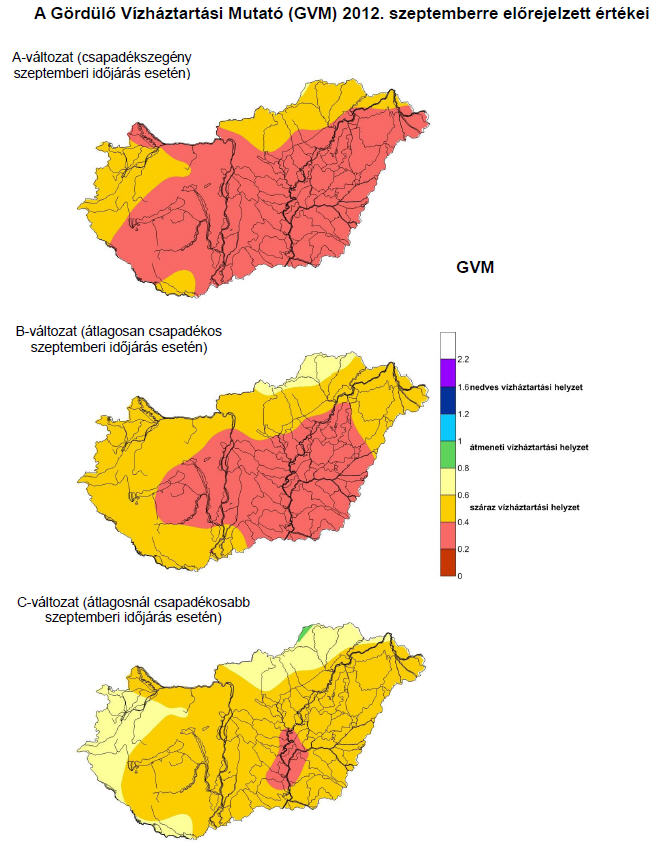 A GVM szeptemberre előrejelzett értékei az A-változatban jóval elmaradnak a sokévi szeptemberi átlagtól és erősen megközelítik, vagy elérik a korábbi években előfordult szeptemberi minimumot, Mosonmagyaróvár és Siófok esetében a korábbi minimumnál is alacsonyabbak