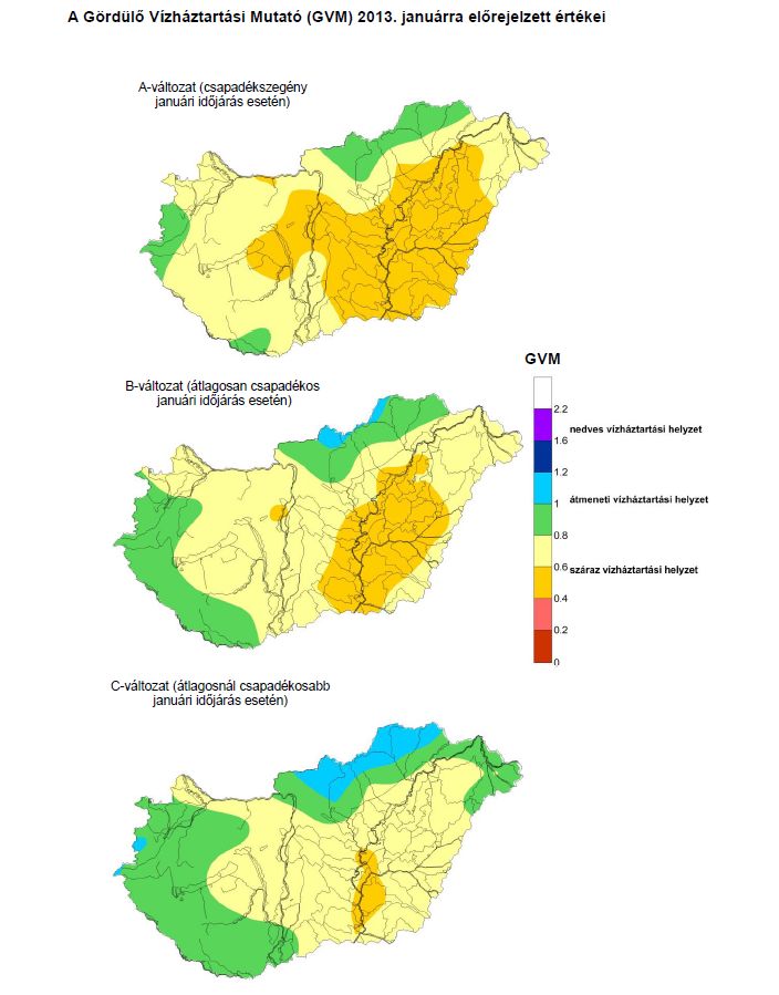 A Gördülő Vízháztartási Mutató (GVM) 2013. januárra előrejelzett értékei