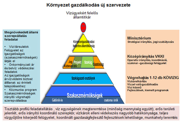 Összegzésképpen azonban azt mondhatjuk, hogy még a problémák időben történő azonosításával és az ennek megfelelően kitűzött helyes célkitűzéseket sem érhetjük el professzionálisan kialakított szervezet nélkül. Ezt a tételt a 2002-ben Japánban tartott víz világfórum állásfoglalása is alátámasztja, miszerint: "Földünk vízállapota, mint az élet alapfeltétele politikai akaraton bölcs kormányzáson, a szükséges anyagiakon és alapvetően az ezeket keretbe foglaló intézményrendszeren múlik."